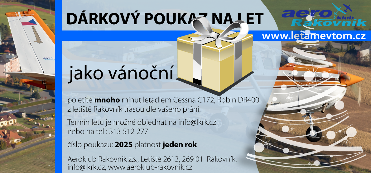 Pokud budete chtít vytvořit dárkový poukaz k vybranému letu, přidejte si ho do košíku. Ještě je opravdu čas :-) Ještě můžete objednávat lety do 23.12.2022 do 16:00, poukazy zasíláme už jen na email. Tak neváhejte a objednávejte netradiční dárky.